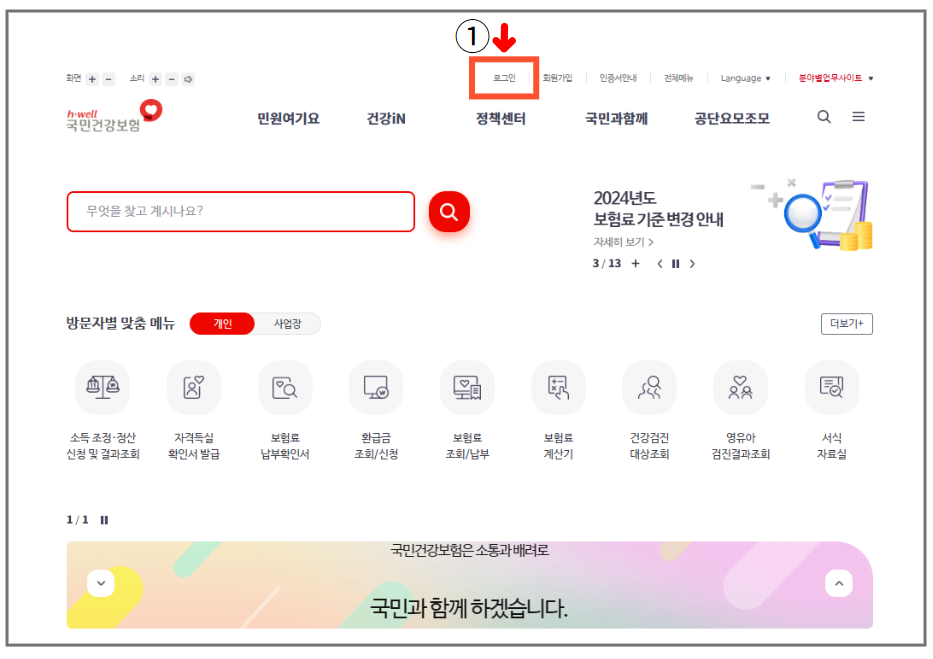1. 건강보험 홈페이지 - 로그인