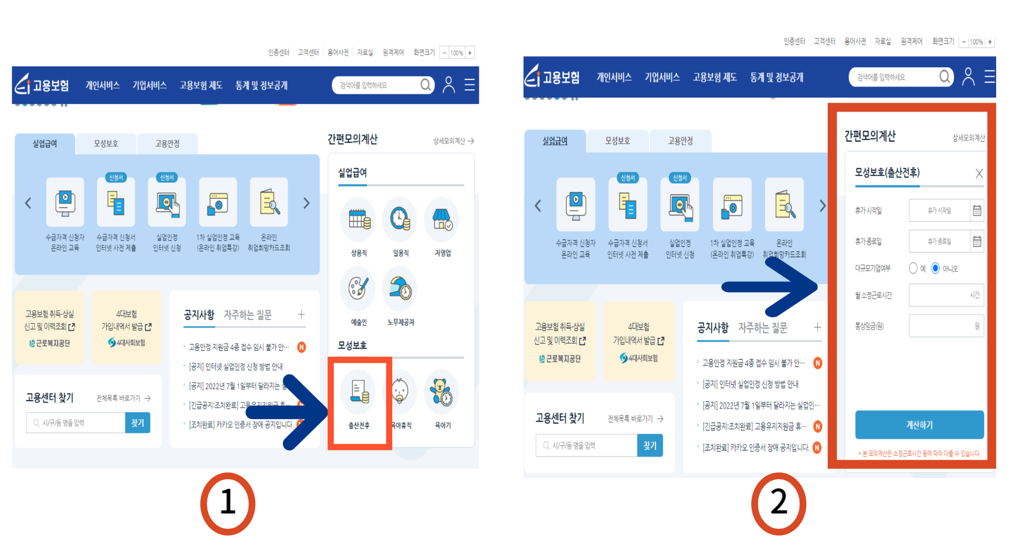 출산휴가급여 모의계산 확인 방법